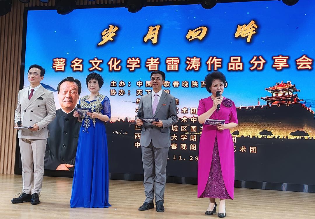 “尊敬的各位嘉宾、各位文朋师友,亲爱的朗诵艺术家们:大家下午好!”雷涛先生登台时,全场响起久久不息的共鸣之声。他深情说道:“初冬的长安,因各位的到来而暖意融融。今天,我们以‘岁月回眸’为名,相聚在这片承载着千年文脉的土地上,共同回望那些藏在文字里的原乡记忆,我心中满是感动与感恩。”