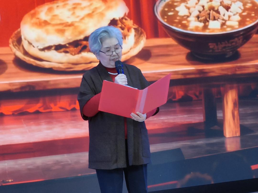 • 散文演诵《吃的就是那个味》:原陕西广播电视台播音指导、“70年70人杰出演播艺术家”、著名朗诵艺术家海茵老师登台献艺。她以醇厚深情的声线,将笔墨间的烟火气娓娓道来,那些藏在美食里的童年记忆、亲情羁绊与故乡情怀,正如王芳闻所言“每一段滋味都直击心灵”,让观众在味觉与情感的共鸣中,重温岁月沉淀的幸福滋味。